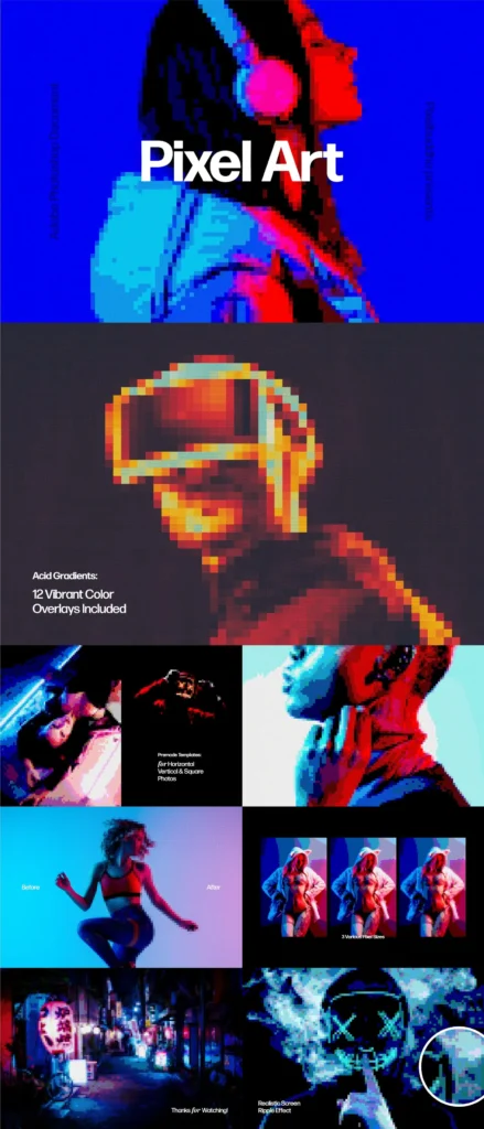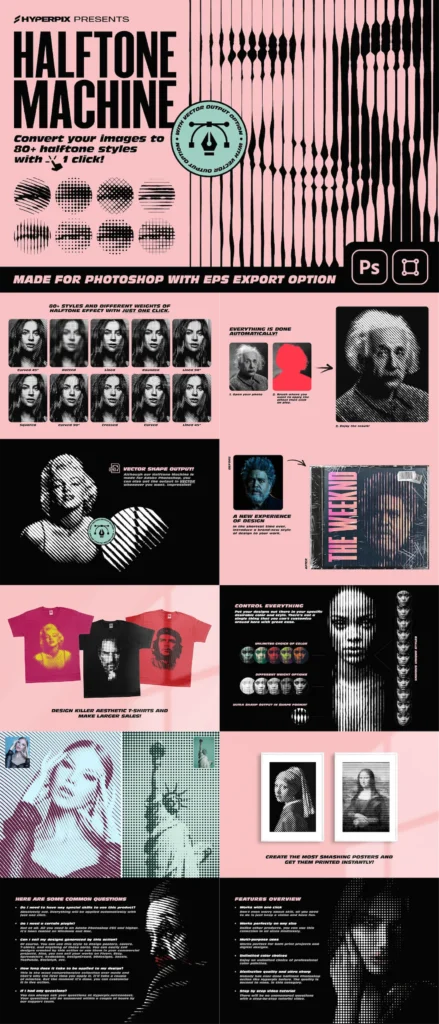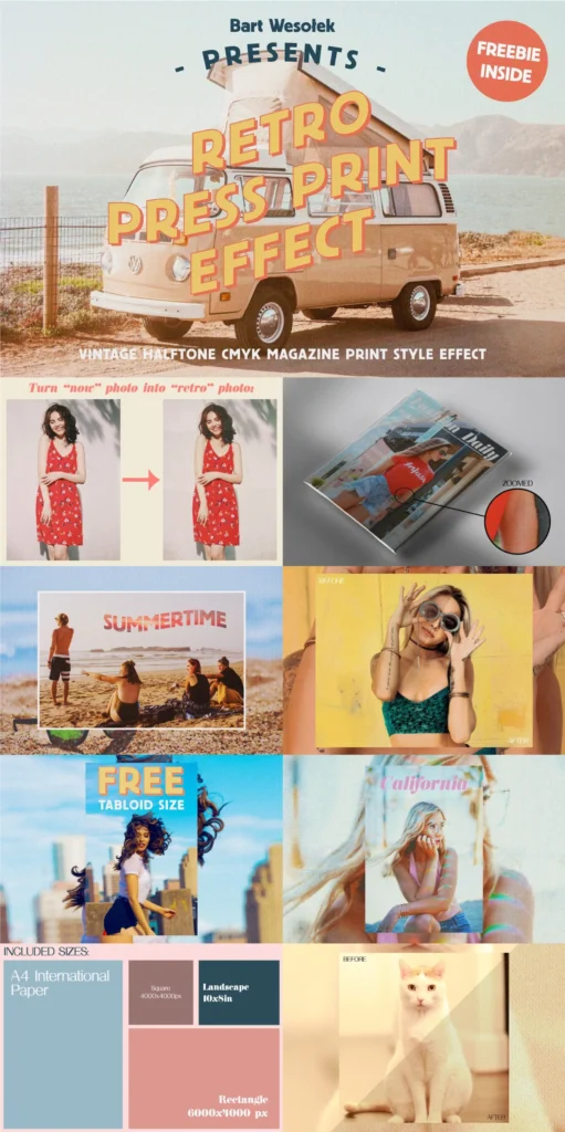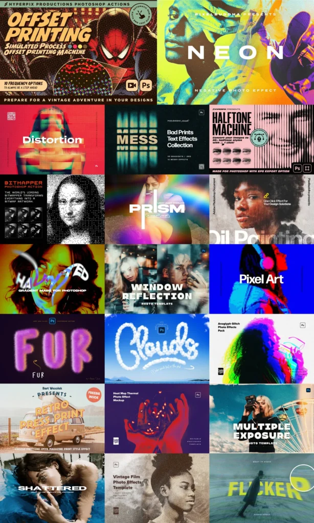 You’ll get creative tools like Halftone Texture Machine, Nostalgic Retro Screen Effects, Vintage Print Actions, Creative Text Effects & much more! All items have been hand picked to give you as much variety as possible.