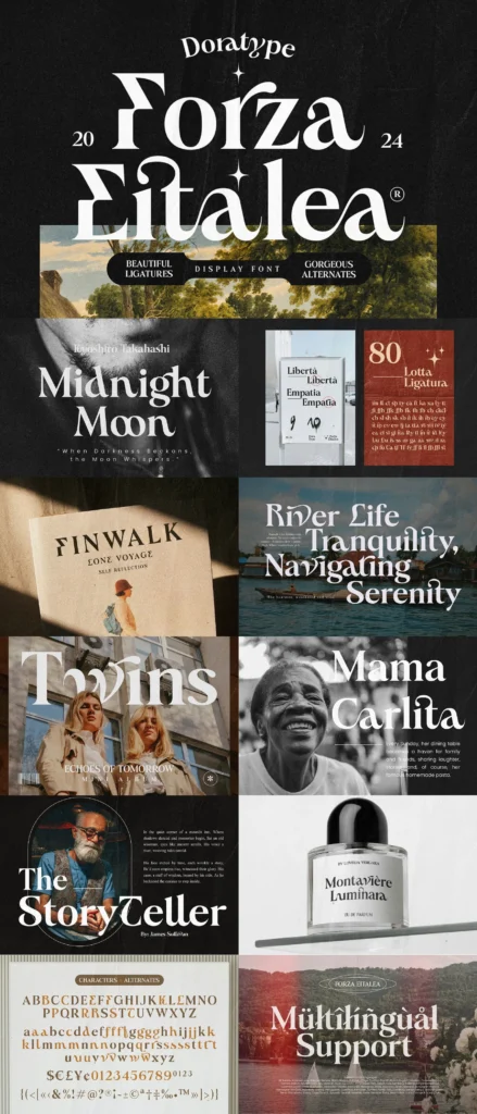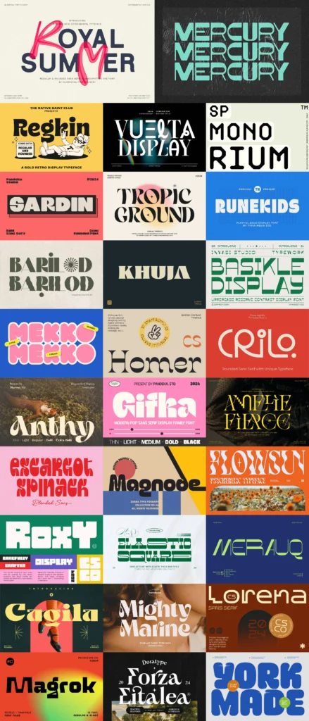 You’ll get a huge range of styles with ligature filled typefaces, variable typefaces, wavy fonts, unique serifs & so much more.