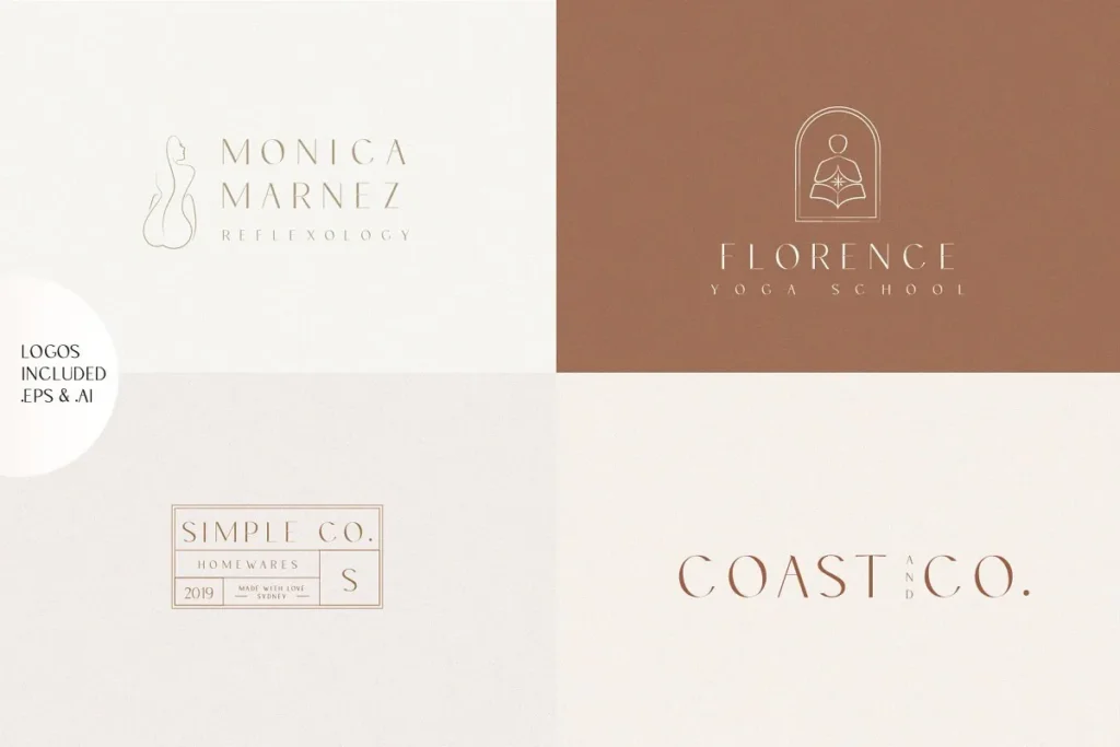 Fonts like Sophillia, Jasper & Grange are full of interesting ligatures that can’t be found anywhere else while Modernica, Coast & Co and Botanica and modern takes on past era’s. There are plenty of bonus logos thrown in also in EPS and AI formats. For more detailed descriptions of individual fonts, look below.